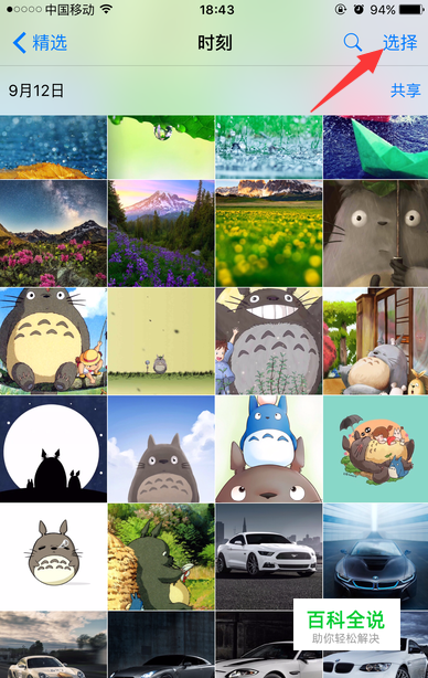 在打开的照片里面,按照以往的做法,我们要选择某几张图片,往往就会点击右上角的选择按钮,然后就依次选择想要的图片