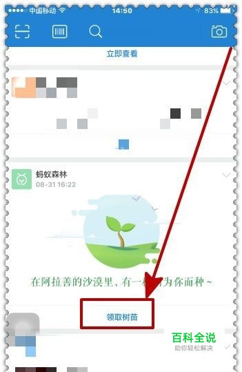打开手机桌面的支付宝钱包后,进入如下蚂蚁森林的页面中,点击“领取树苗”打开,进入下一步操作,如下图示。