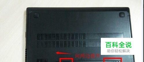 把笔记本翻过来,如图所示,将背后面的开关,向两边拨开。取出电池。