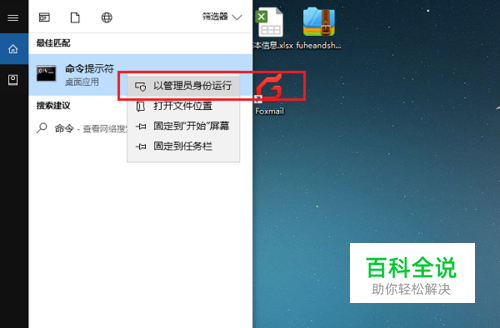 第一步在win10系统任务栏搜索框上,搜索“命令”,搜索到命令提示符之后,鼠标右键以管理员身份运行,如下图所示: