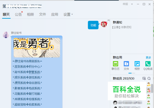 首先需要把第十代QQ机器人加入你群里并把机器人设为管理员,在群里发功能两个字就会出来功能列表。功能列表的每个目录就表示是一种功能,