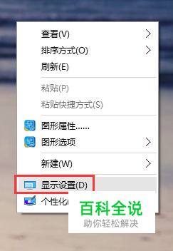 1、首先,在Windows 10的桌面点击鼠标右键,选择“显示设置”