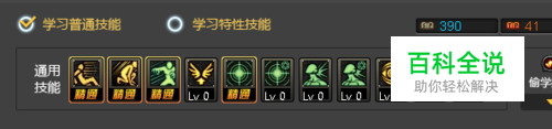 五.通用技能必点(如图) 通用技能点出来了物理暴击和蹲伏,剩余390点sp,可以自己额外点1点小技能,便于连招使用