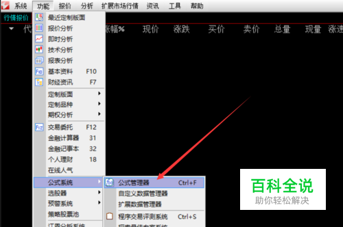 在弹出的下拉菜单里依次点击【公式系统】-->【公式管理器】,如下图所示。