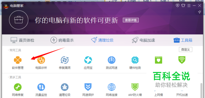 1,QQ音乐出现异常后,我们可以在电脑上下载安装一个腾讯电脑管家,然后打开它工具箱里面的软件管理功能