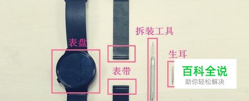 如图所示,全部元件分为"表盘""表带""拆装工具"和"生耳";生耳和表带属于一组元件,缺一不可!一般在购买表带时,生耳和拆装工具都是随表带赠送的!