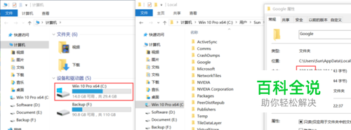 找到要移动的软件(以Chrome为例)所在的位置:%LocalAppData%\Google,大小为228MB,此时C盘剩余空间14.0GB