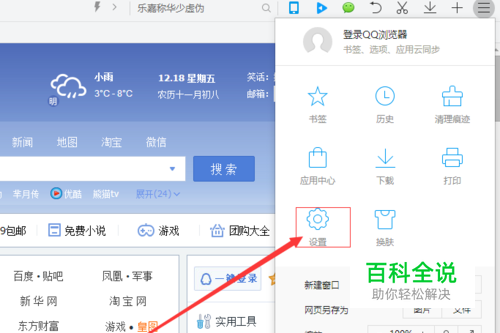打开我们的QQ浏览器,在菜单栏里找到设置。