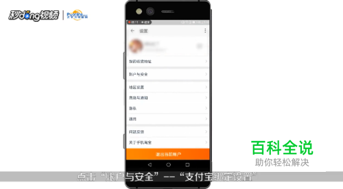 点击账户与安全,支付宝绑定设置。