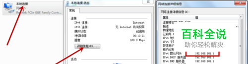 首先我们需要知道第一个路由器的IP地址是多少 查第一个路由器的IP地址很简单,用网线将电脑与第一个路由器链接,然后选择本地链接——状态——详细信息,这个时候就可以看到第一个路由器的IP地址为192.168.101.1
