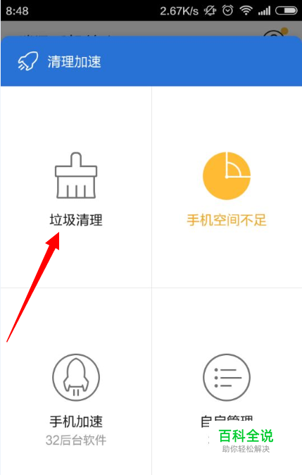 进入清理界面,点击上方 【垃圾清理】选项