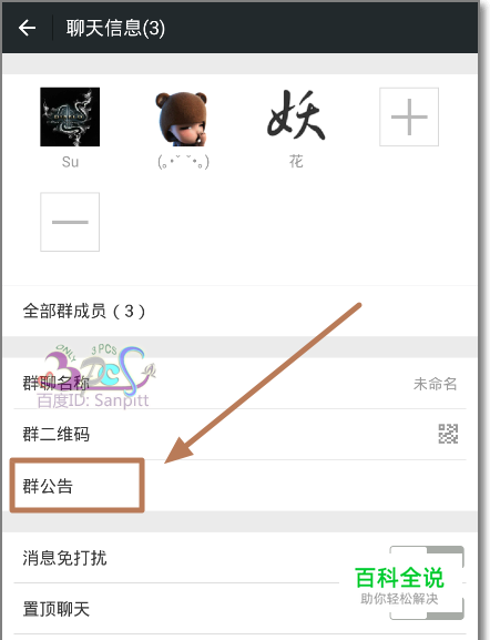 在群公告下面就不再是空白,而刚刚发布的文字公告了。