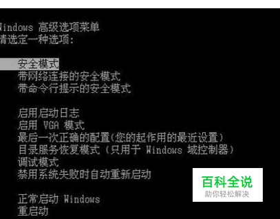 在出现上述界面时,按住电源开关10秒强制关机,确认关机后,再次点击开关键开机,并连续点击键盘上的F8键,直到出现高级选项菜单(如下图)。用键盘右下角的方向键“↓”键选择“安全模式”按“回车”,再选择当前系统,按“回车”
