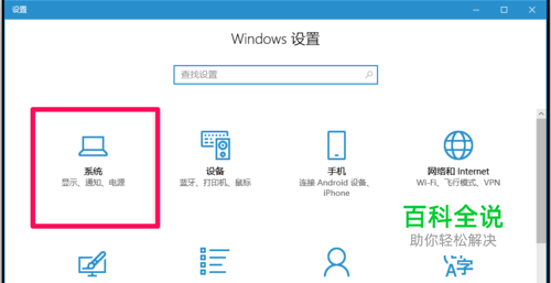 Win10系统分辨率设置及设置错误而引起显示器输入不支持问题的解决方法 Windows10系统分辨率设置 点击系统桌面左下角的【开始】,在开始菜单中点击【设置】,在Windows 设置窗口中,我们点击:系统 - 显示、通知、电源;