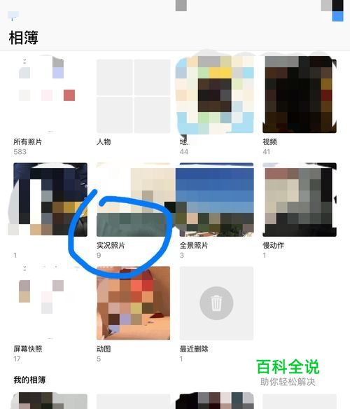 相册中分多个相簿。点击相册中的实况相片的相簿。打开查看实况相片。