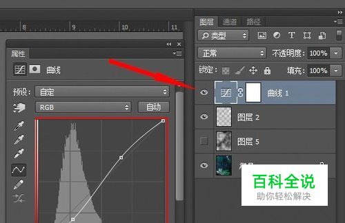 如果图片过于朦胧,可以新建“曲线”图层(红色箭头所指),加点对比度(如下图红框)