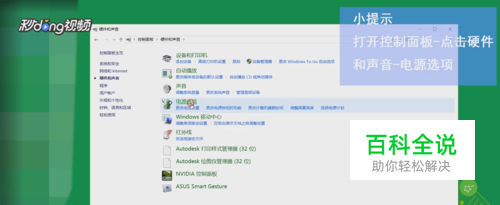 首先打开控制面板,点击硬件和声音,找到电源选项。