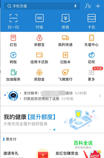 启动支付宝,登陆你的账号, 如下图所示