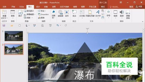 第一步,这里就以一个山水背景,插入图片作为一个背景图片,由于是做演示操作,所以图片就是随便找的,但一个原理是一样的。