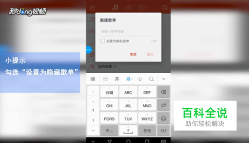 点击“新建歌单”后,勾选“设置为隐藏歌单”并点击“确定”。