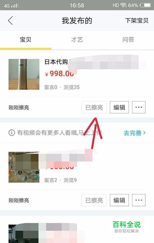 每一个商品下方都可以看到“擦亮”,每天点击擦亮可以保证你的商品不被其他人的商品刷新下去。