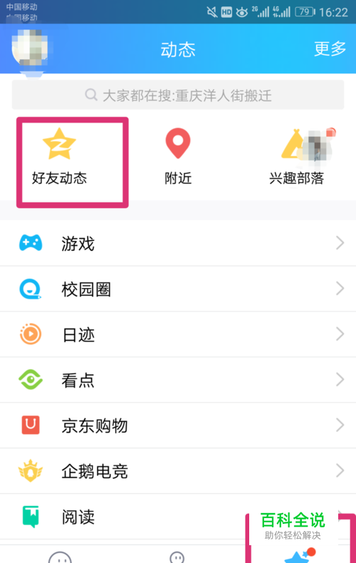 打卡手机QQ,首先点击“动态”,再点击“好友动态”打开QQ空间。