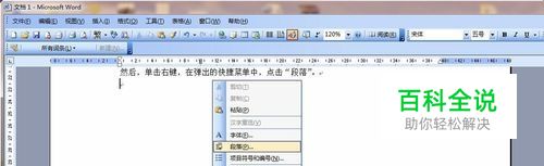 然后,单击右键,在弹出的快捷菜单中,点击“段落”。