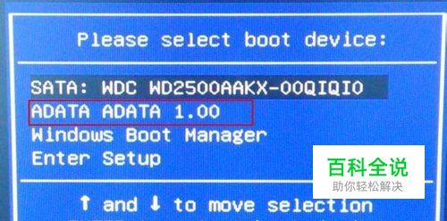 届时,在屏幕中会出现一个蓝色背景的启动项选择窗口,其中红色方框选中的启动项就是小编所插在电脑上的u盘启动盘,如下图所示: