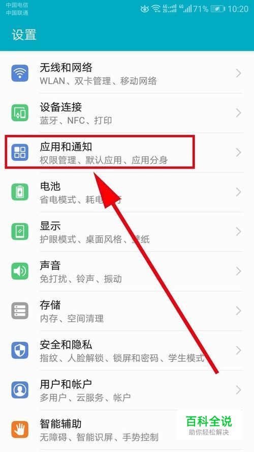 然后,在打开的列表中找到“应用和通知”选项,点击打开它