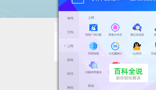 接着在工具箱的界面,点击左侧页面的上网,如图所示