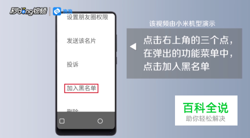 点击右上角的三个点,在弹出的功能菜单中,点击加入黑名单