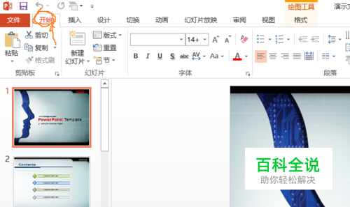 直接双击要演示的PPT文档,windows会自动打开PPT软件进入,缺省会进入到<开始>tab页,如下图所示,也可以先打开power point软件,然后选择最近使用过的文档,或者打开其它演示文稿来找开需要演示的PPT文件。