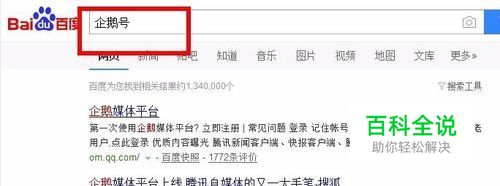 在搜索引擎中搜索企鹅号或是企鹅媒体,点击打开企鹅号官网