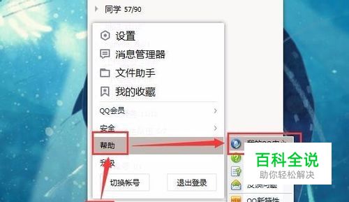 首先使用要恢复好友的qq账号登陆qq软件,然后点击qq面板左下角的帮助菜单进入我的QQ中心。