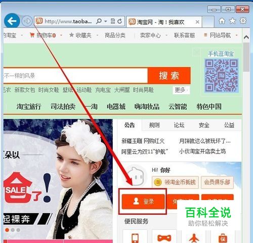 输入淘宝网的地址,打开淘宝网,然后输入我们自己的淘宝账号和密码,登陆淘宝网 如图