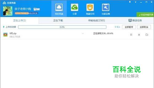 因为文件有将近3个GB,所以上传速度特别的慢。需要耐心等待一段时间哦。