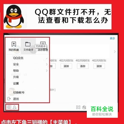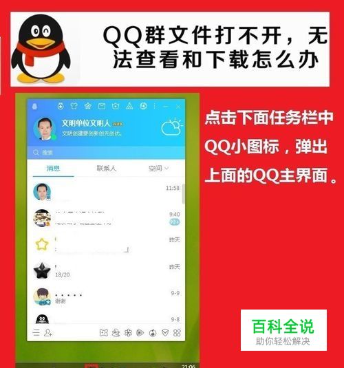 QQ群里别人发送的新文件如果你不打开看一下,别人把原文件删除或移动路径后,那再打开时,系统就会提示【无效文件】。一般群里新文件只要打开看一下,电脑就会自动下载保存到本地文件夹了,别人若再删除原文件或移动文件录径也不怕找不到。有时群里新文件打不开,刷新也不出来,无法查找和下载群文件,如何解决这个问题,请看下面。