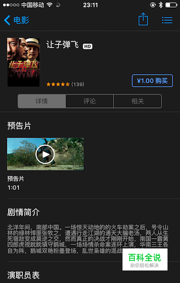 2、打开 iTunes Store,选择一部大容量电影。这里选的是《让子弹飞》,1080p高清版 4.97GB 大小,对这部手机而言足够了。