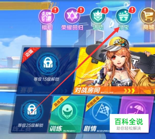 进入之后,点击图示位置的寻宝,进入下一页面,如图所示。
