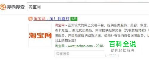 打开搜狗浏览器,在搜索框中输入“淘宝网”,点击官网进入页面。