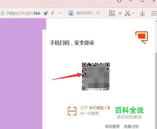 页面上就显示出二维码图片,用已登录的手机淘宝的扫一扫进行扫描,即可以不用密码安全快速登录淘宝账号了。