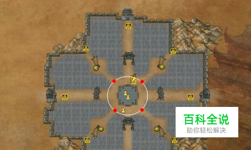 首先我们切换到交易线,先看交易线地图,基本上摆摊摊位都集中在中央交易擂台四周。所以可以根据图中四个红点站位,那样把交易线分为四大区域。