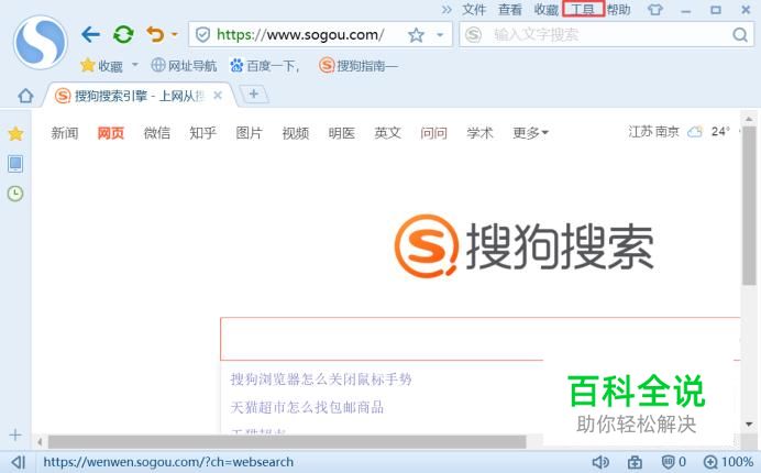 首先,我们打开我们电脑上面的搜狗浏览器,然后我们点击工具;