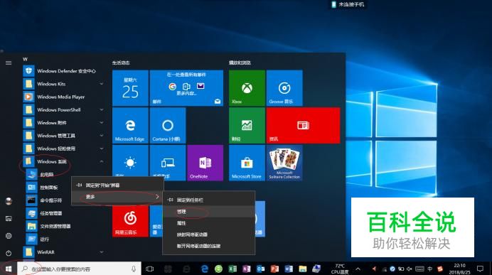 如图所示,展开"Windows 系统"文件夹。鼠标右击"此电脑"项。点击"更多→管理"项。