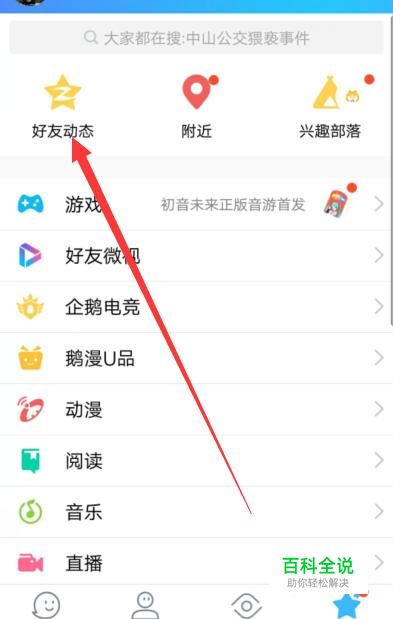 进入之后,找到“好友动态”,点击并进入,如图所示。
