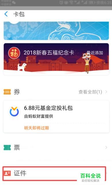 弹出的界面,我们点击证件;