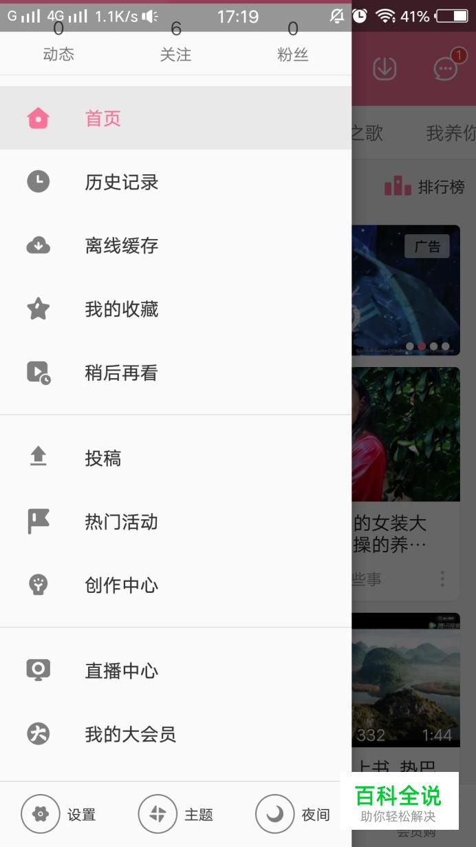 打开b站,点击左上角头像,进入设置界面。如下图所示,会有菜单出现,在底端,有“设置”。