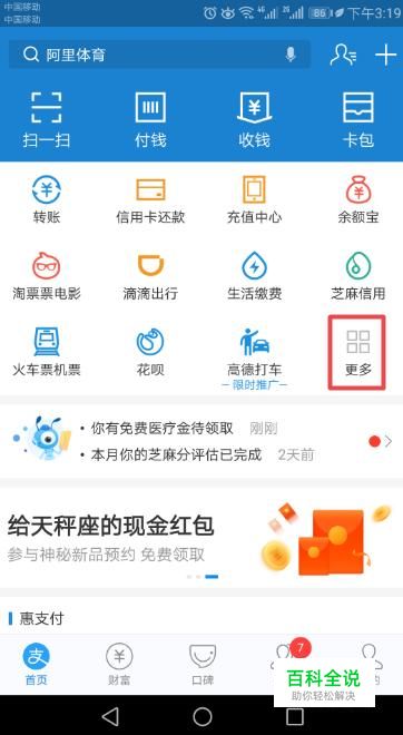 首先,我们打开我们的手机,然后我们打开支付宝,之后我们点击更多;