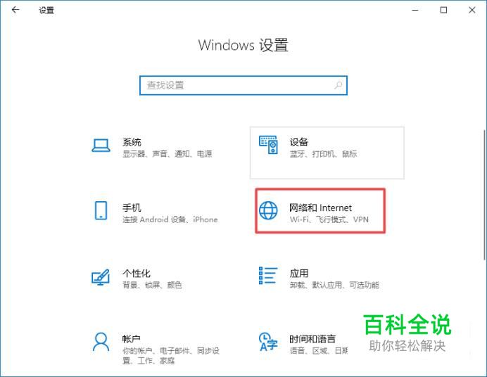弹出的界面,我们点击网络和Internet;