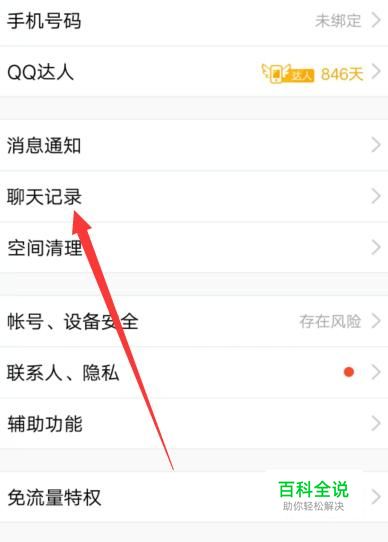 进入之后,点击“聊天记录”,进入下一页面,如图所示。